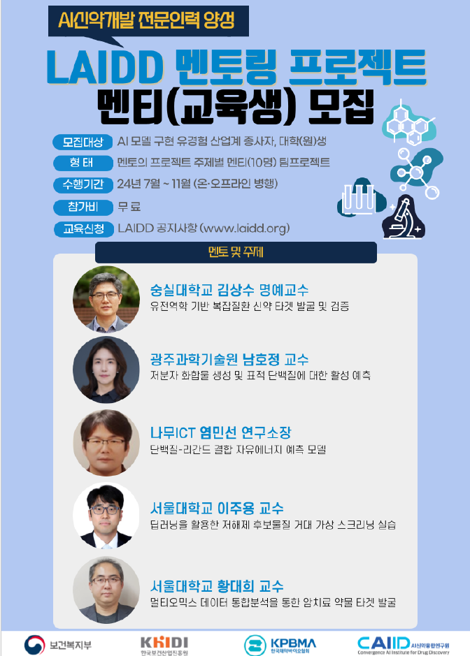 ※ 라이드(LAIDD, Lectures on AI-driven Drug Discovery): 국내 최초로 인공지능과 제약바이오분야 융합인재양성을 목표로 하는 ‘인공지능 신약개발 종합교육플랫폼’