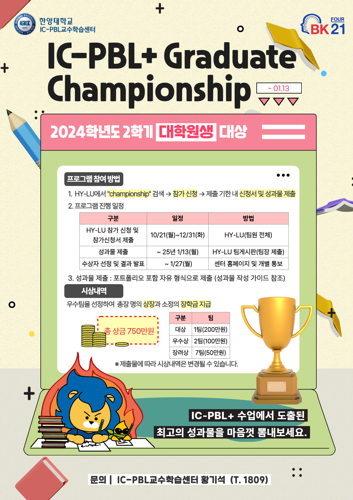 붙임 1. 2024년 2학기 IC-PBL+ Graduate Championship 포스터