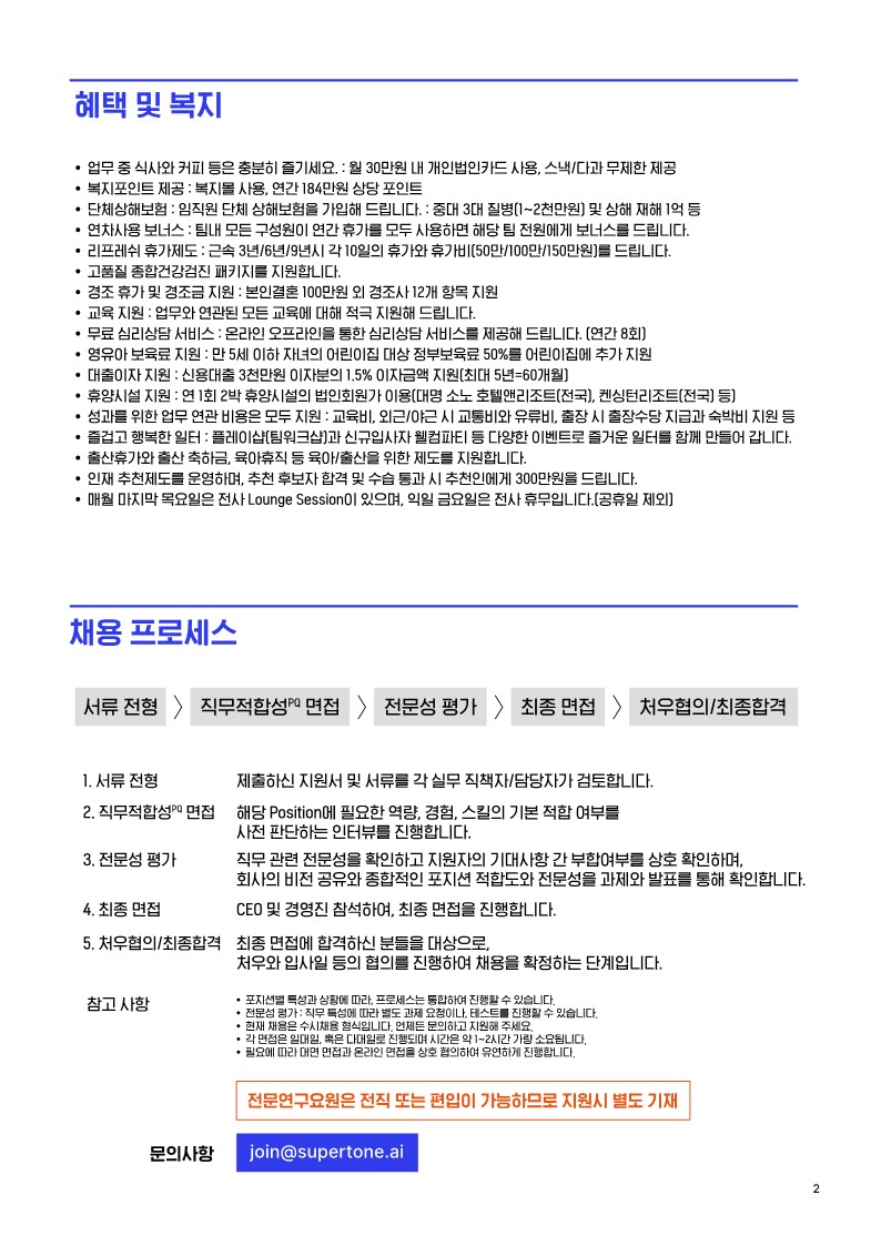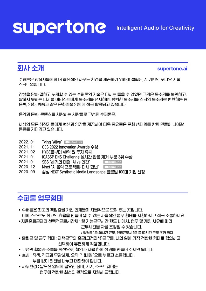 [수퍼톤] 연구원 채용 공고(전문연구요원 가능)