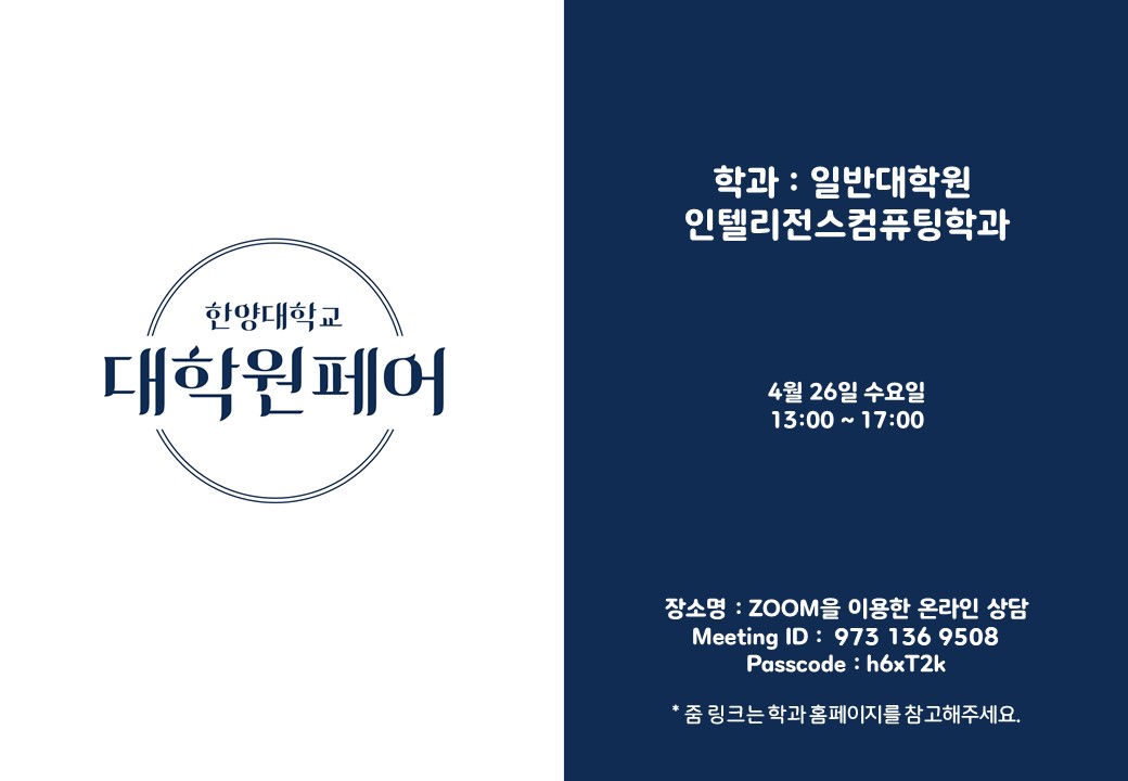 1) 주제: 2023-1학기 '학부생을 위한 대학원 Fair' - 인텔리전스컴퓨팅학과