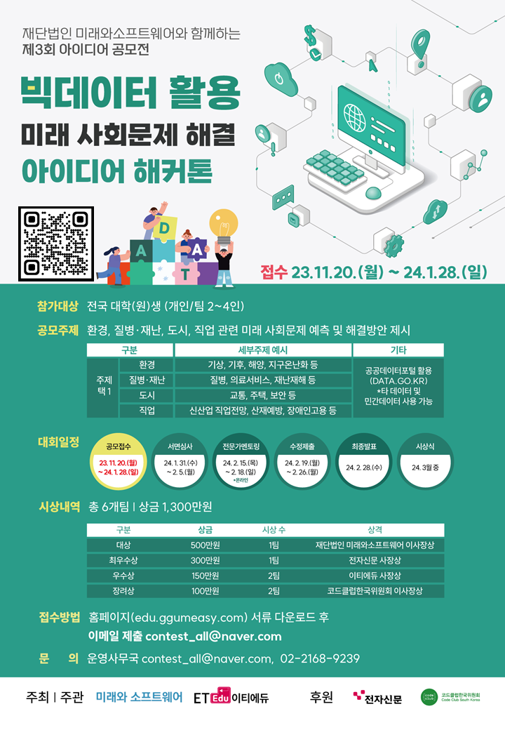 [미래와 소프트웨어] 빅데이터 활용 미래 사회문제 해결 아이디어 해커톤 공모전(~1/28)