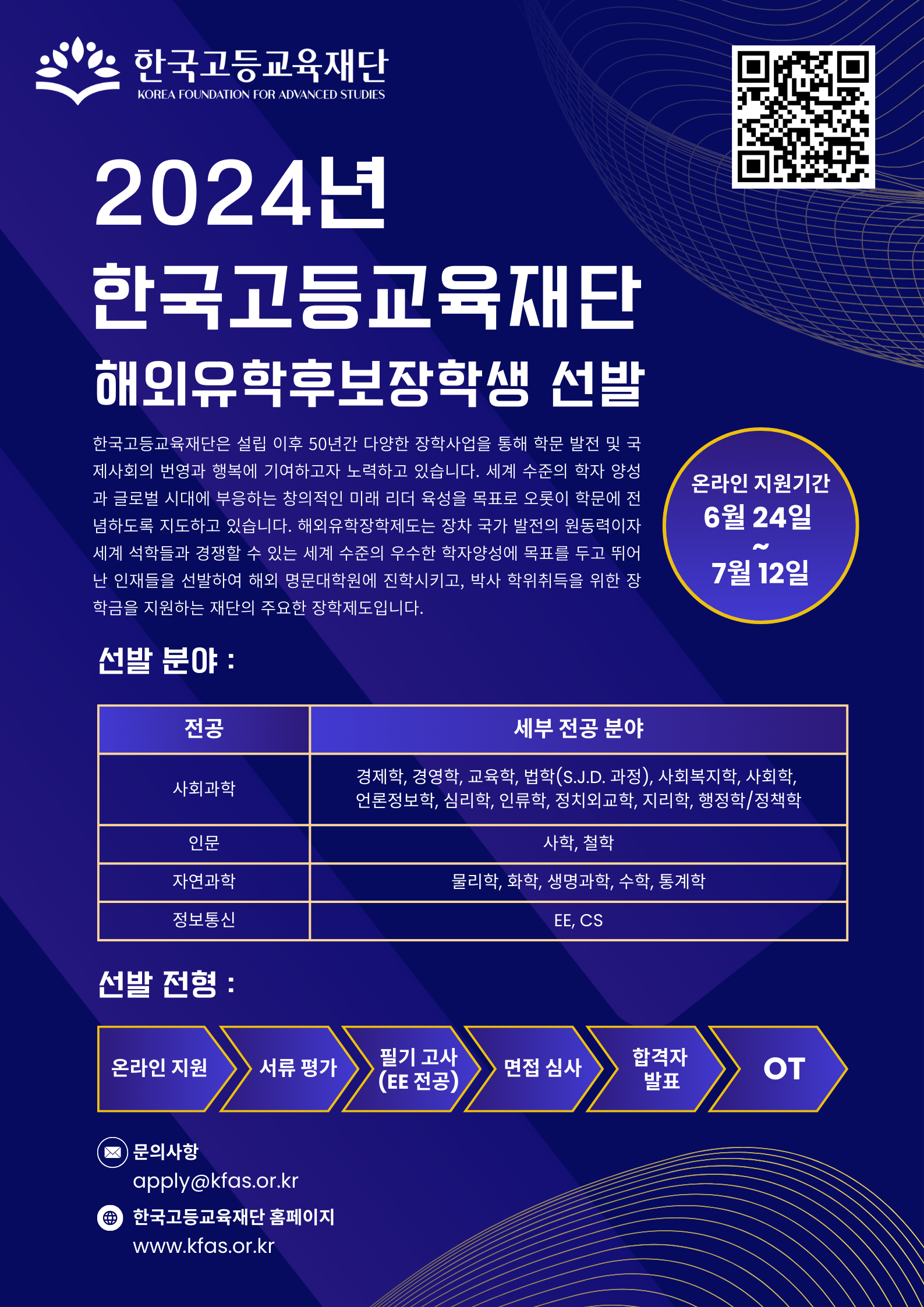l  문의apply@kfas.or.kr제50기 해외유학후보장학생 모집 포스터
