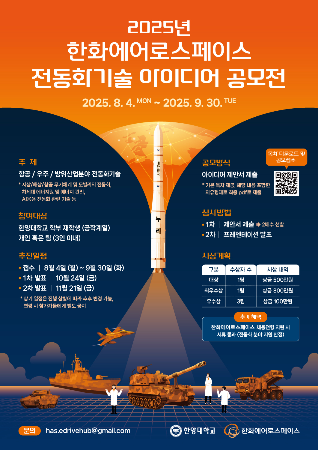 • 행 사 명 : 2025년 한화에어로스페이스 전동화기술 아이디어 공모전