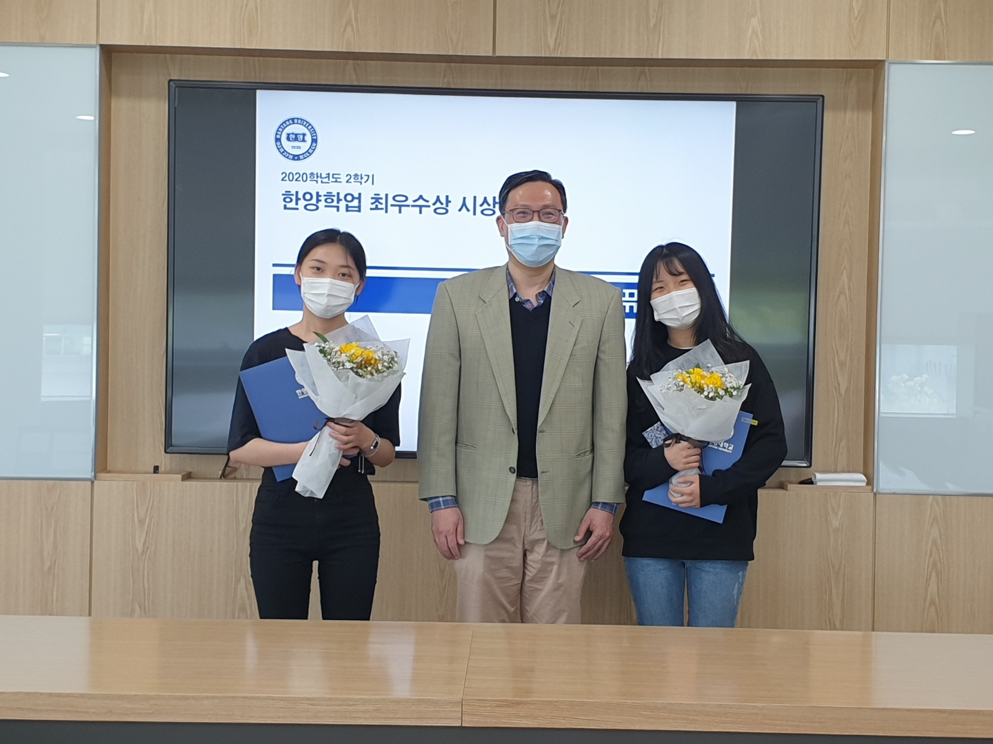 2021.04.07일 13시에 FTC 5층 인텔리전스컴퓨팅학부 교수 회의실에서 한양학업 최우수상 시상식이 개최되었습니다.