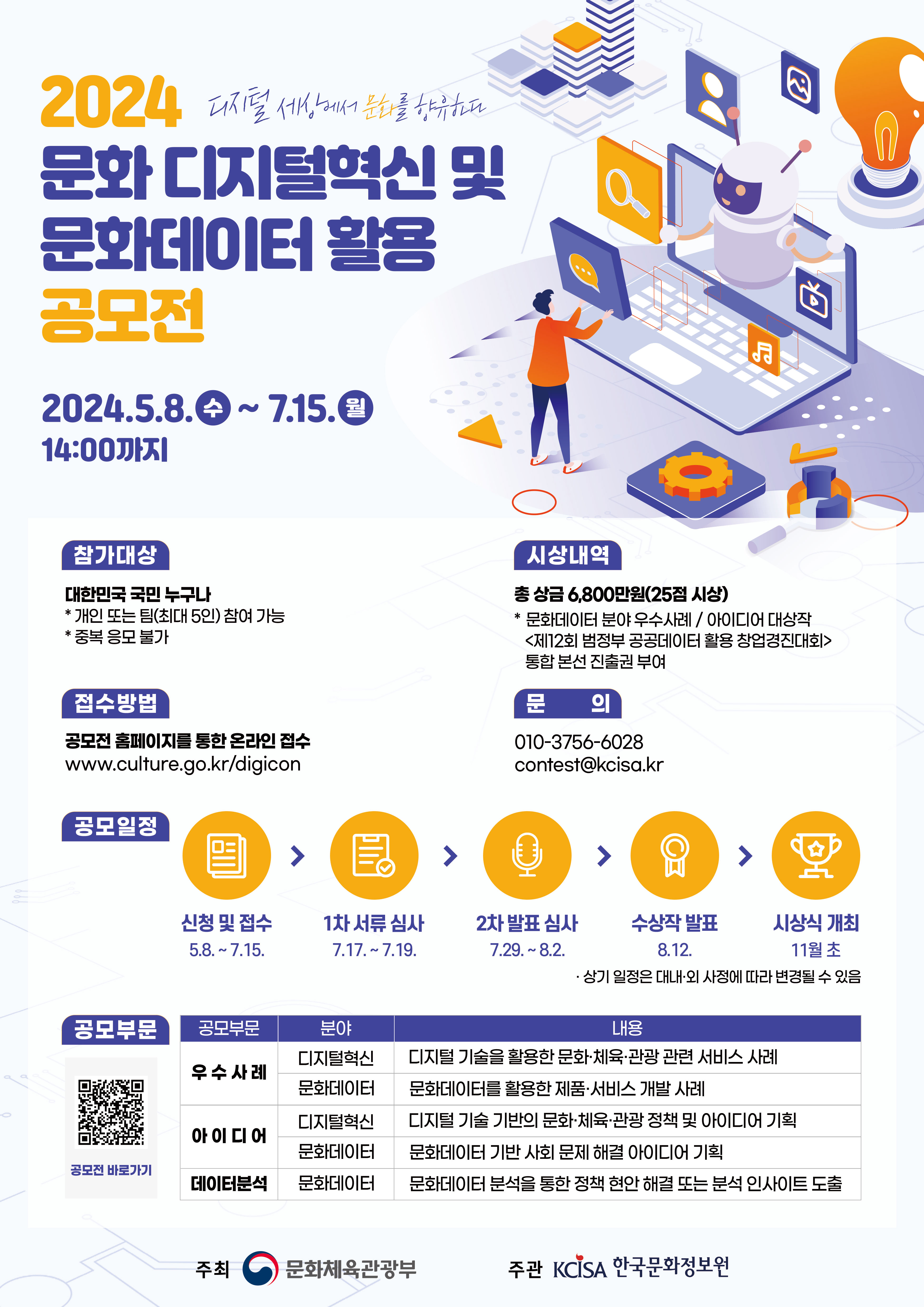 | ● 공모전명: 2024 문화디지털혁신 및 문화데이터 활용 공모전 | ||||||||||||||||||