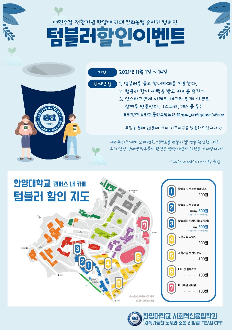 한양대 카페 텀블러 할인 이벤트(~11/14)