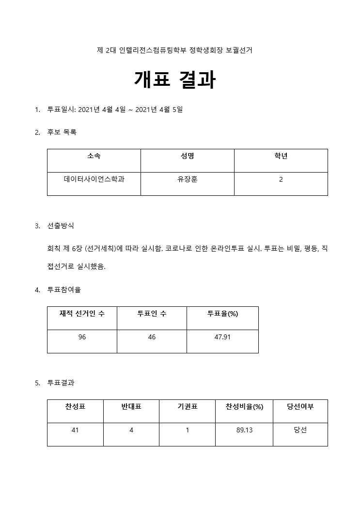 [인텔리전스컴퓨팅학부 학생회] 보궐선거 결과 공고