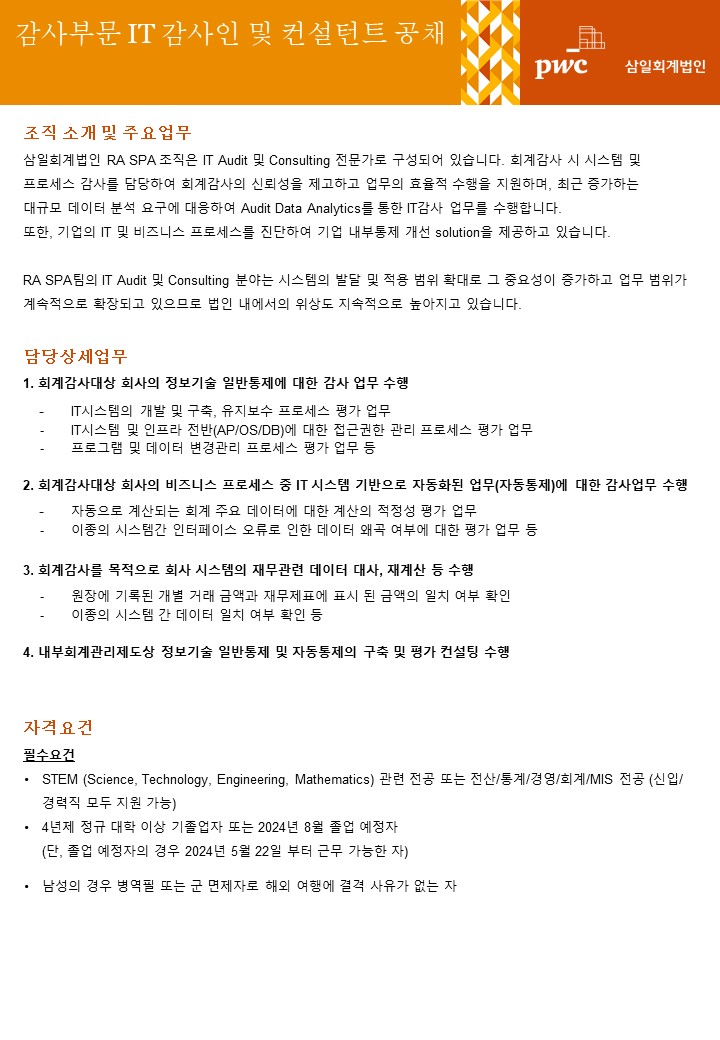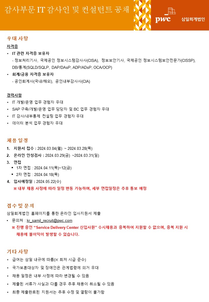 - 문의처 : kr_samil_recruit@pwc.com