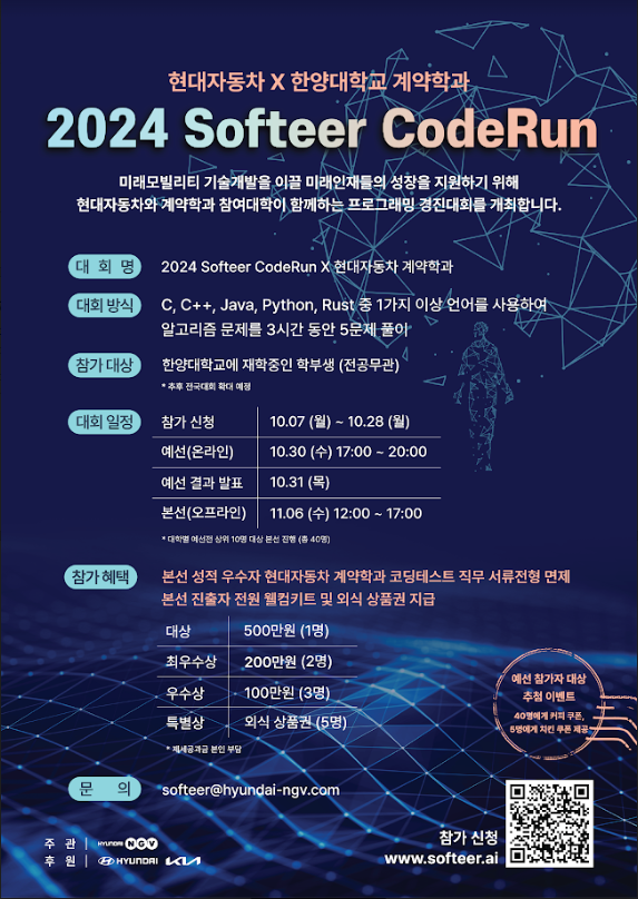 ■ 대회명 : 2024 Softeer CodrRun X 현대자동차 계약학과
