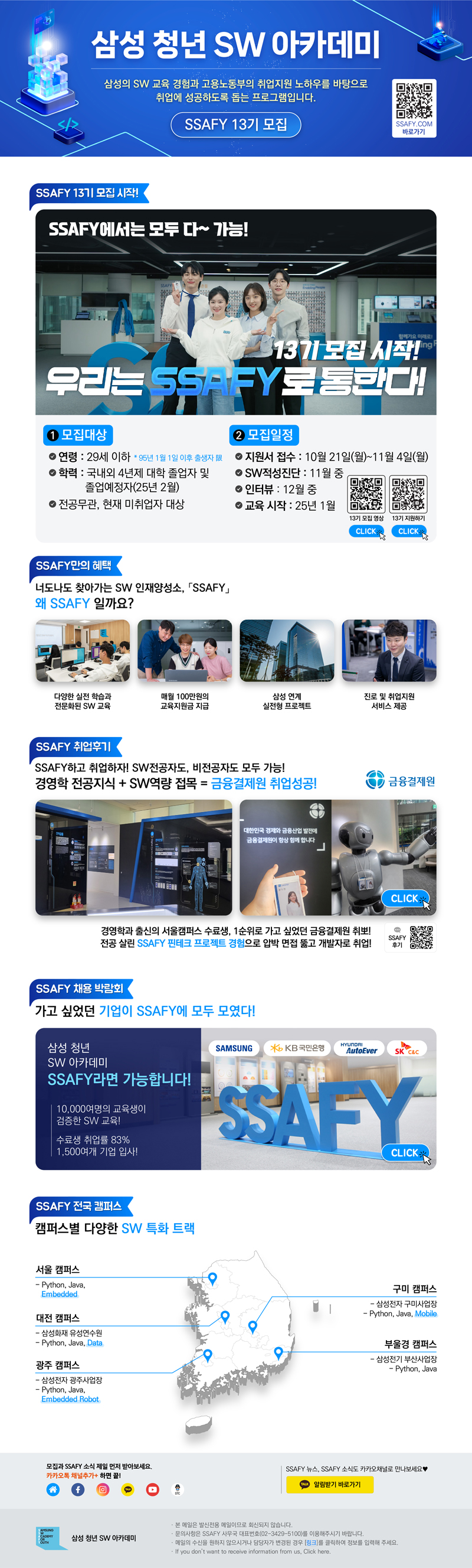'삼성 청년 SW 아카데미' 에서 13기 교육생을 모집합니다.