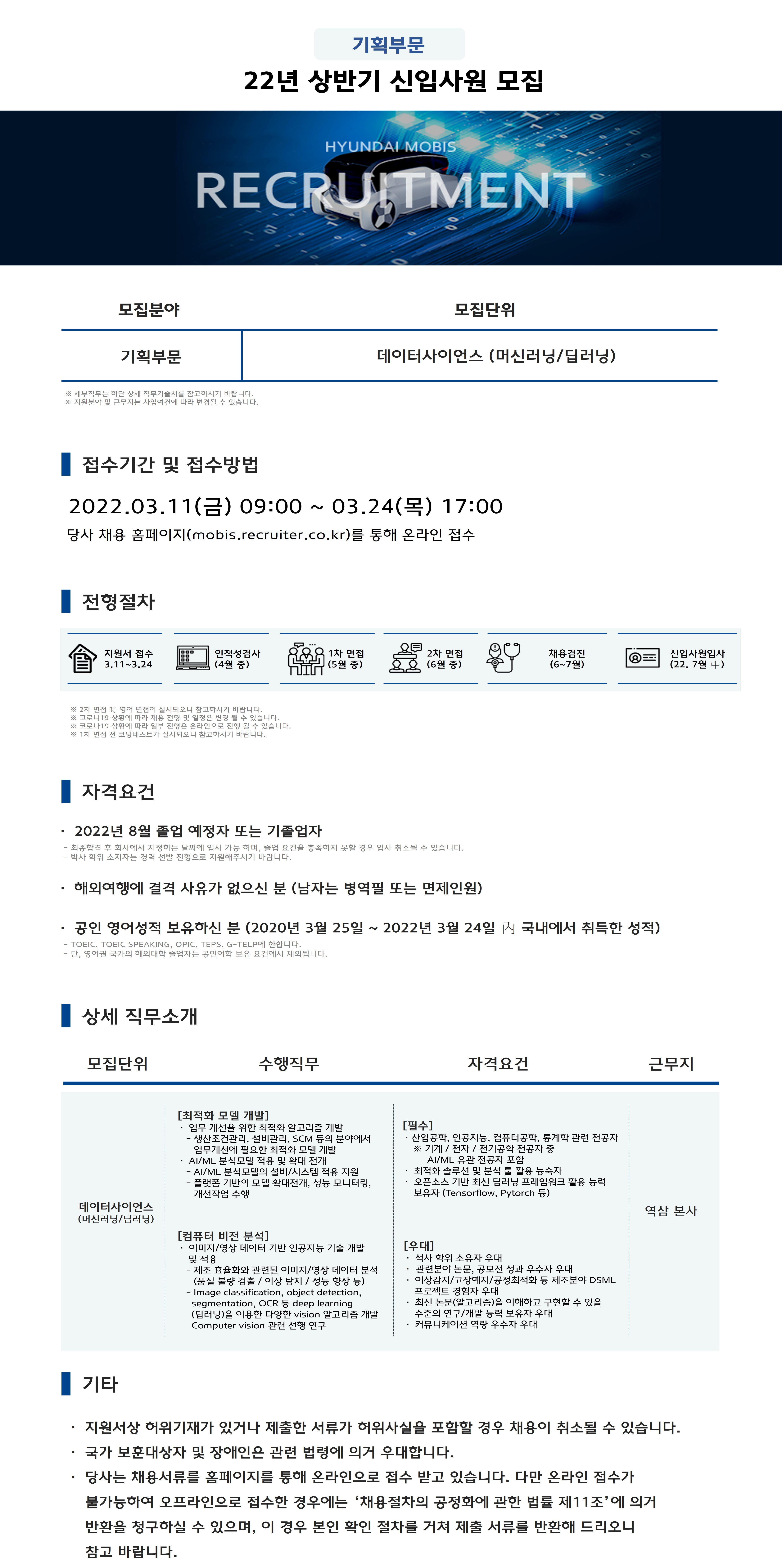 현대모비스 기획부문(데이터사이언스) 신입사원 채용