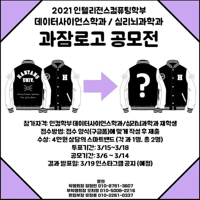 새내기 여러분들도 직접 과잠에 새겨질 로고를 만들어볼 기회를 드리고자 2021학년도 과잠 로고 디자인 공모를 실시하려고 합니다!