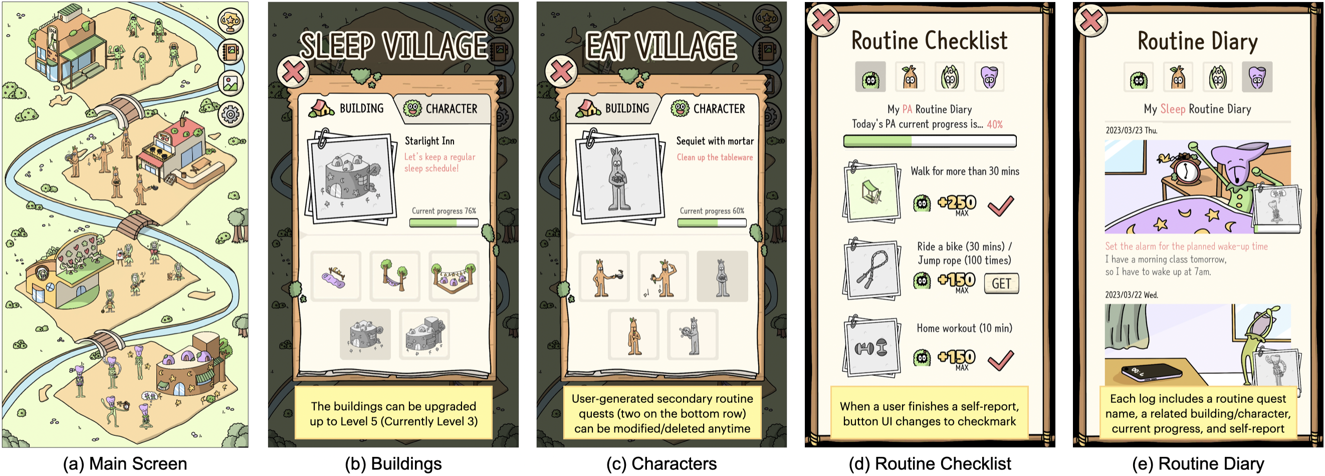- Bogoan Kim, Dayoung Jeong, Hwajung Hong, and Kyungsik Han. “Narrating Routines through Game Dynamics: Impact of a Gamified Routine Management App for Autistic Individuals,” ACM CHI 2024.