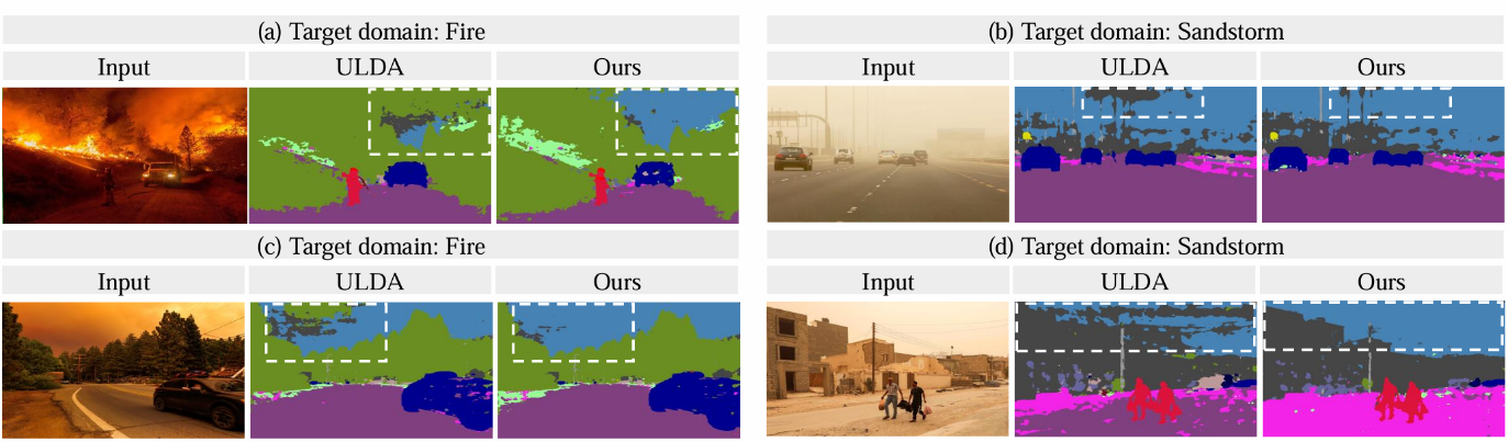 SIDA는 다양한 제로샷 도메인 적응 시나리오에서 기존의 텍스트 기반 방법들(PØDA, ULDA)을 능가하는 우수한 성능을 보였습니다. 특히, 데이터 확보가 어려워 제로샷 적응이 필수적인 '화재''모래폭풍'과 같은 까다로운 환경에서도 높은 성능을 달성하여 그 효과성을 입증했으며 기존 방식 대비 최대 약200배 빠른 학습시간을 보였습니다. 이는 합성 이미지를 기반으로 한 접근법이 복잡한 목표 도메인의 특징을 효과적으로 표현할 수 있음을 보여줍니다.